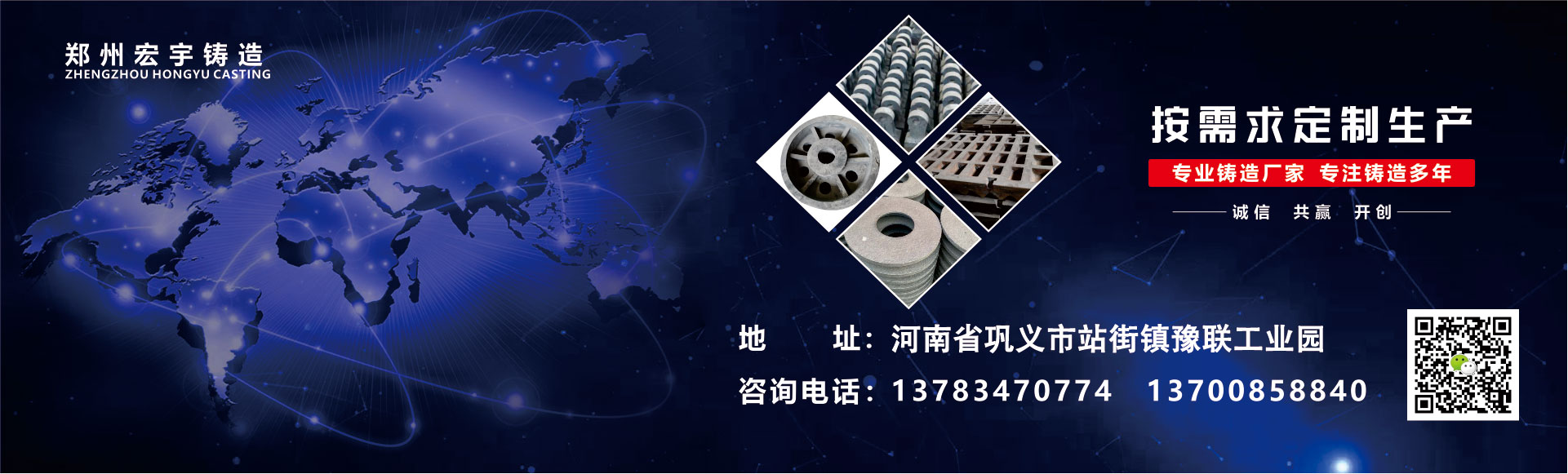 鄭州宏宇鑄造位于河南省鄭州鞏義市是鑄造件廠家,主要生產生鐵機械配件、耐磨襯板、耐磨錘頭、合金耐磨錘頭、制砂機錘頭、鑄鋼件、高鉻合金鑄件、球墨鑄鐵件、消失模工藝鑄件、砂型工藝鑄件等!來樣即可加工。 我們技術力量雄厚、設備齊全,目前有高級技師數名,技術人員數十名,能滿足客戶的不同需求,來圖來樣均可生產,而且為了確保產品質量進一步得到完善和提高, 確保供貨及時達到客戶的滿意,我們采用優(yōu)質原材料及先進的制造工藝!